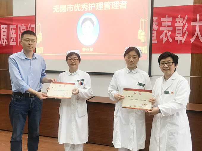 紀念大會首先為獲得無錫市優秀護理管理者、無錫市優秀護士、醫院“護理之星”、“優秀護士長”等榮譽的護士長和護士們頒發了榮譽證書;隨后,蔣葉華副院長做大會致辭,代表院領導充分肯定了醫院護理工作者們的辛勤付出和默默奉獻;強調了護理工作在臨床診療中的重要性,護士已成為推進健康中國建設的一支主力軍,在協助診療、救治生命、減輕痛苦、促進康復等方面,都發揮著不可替代的作用,希望我院護理人員不斷提升職業技能,發揮專業價值,為醫院發展和患者健康貢獻更大力量。最后,大會進行一年一度的“天使基金”現場募捐,募捐所得將繼續用于幫助困難患者。(護理部陳曉俠)