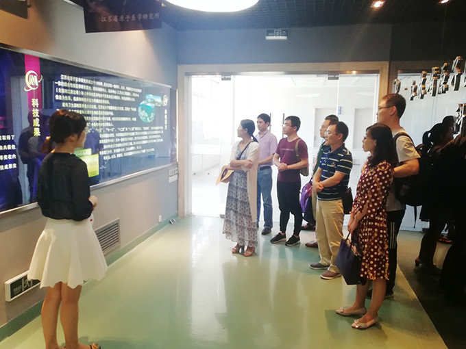 張玲博士介紹了徐州醫(yī)科大學(xué)藥學(xué)院在活性硫化物和硒化物分子探針領(lǐng)域的最新研究進(jìn)展與成果。在我所科研人員陪同下,張玲博士一行參觀了我所的科技成果展示廳和相關(guān)科研儀器設(shè)備,對(duì)我所在核醫(yī)藥方面的研發(fā)平臺(tái)以及取得的科研成果印象深刻。我所科研人員與張玲博士一行進(jìn)行了專業(yè)領(lǐng)域的深入討論交流,探討了小分子探針的設(shè)計(jì)與應(yīng)用方面的一些前沿問(wèn)題。雙方均有意向在以后的科研工作中加強(qiáng)溝通,進(jìn)一步在專業(yè)領(lǐng)域、科研條件方面開展廣泛深入的科研合作。(文 研究部 陳正平)