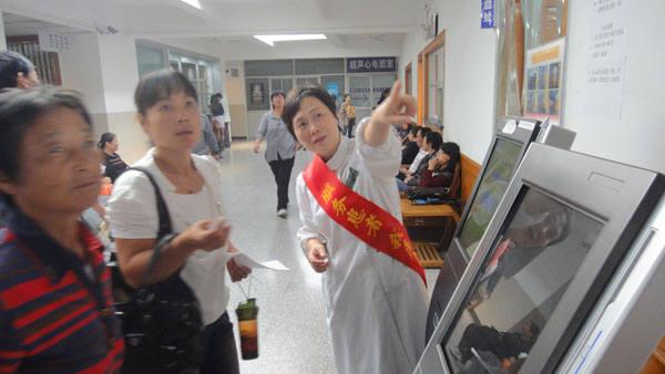 去年醫院門診樓改造,檢驗科新上了叫號排隊系統、化驗報告自助系統等,由于醫院的患者多來自偏遠的農村,為了方便他們順利就診,縮短等候排隊時間,由我所團委牽頭,組建了由15名青年職工志愿者的“服務患者,我愿我行”服務隊,利用個人休息時間,于每周三堅持為前來就診的患者提供各種志愿服務,截止到今年一月初累計服務近2600人次。