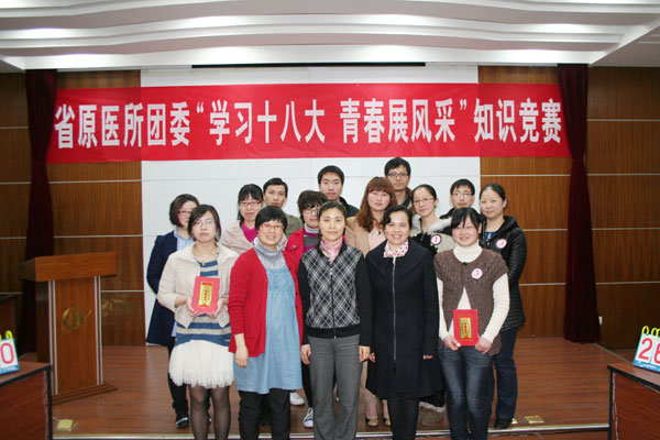 為深入學習和貫徹十八大精神,3月30日,所團委在階梯教室舉辦了“學習十八大 青春展風采”知識競賽,四個團支部共12名選手參加了競賽,衛生局團委書記蔣慧娟和所黨委副書記秦秋萍作為特邀嘉賓出席了本次競賽,并為選手們頒獎。