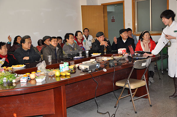 12月29日,雖然窗外寒風凜冽,但江原醫院城中部三樓糖尿病中心卻春意盎然,新老糖尿病友從四面八方而來,歡聚一堂,與醫護人員一同參加體驗活動。上午8點30分活動正式開始,首先,陳琰副主任用生動的語言為病人講解如何做好節假日的管理,盡情地享受節假日的快樂與美味。病友們個個認真傾聽,有的還仔細做著筆記。接著,程曉青護士長帶領醫護人員和病友隨著歡快的音樂一起學跳健身操,雖然大家動作不大熟練,有些甚至還略顯笨拙,但病友們個個臉上都洋溢著歡樂的笑。還有病友為大家表演了精彩的節目:養生太極拳、八段錦、錫劇表演等,在活動中讓病友感受到了運動與愛好的樂趣。在科學配餐環節,專科護士沈燕娜用日常生活中常用的食材,邀請病人及家屬一起參與,共同完成早、中、晚餐及加餐的搭配,讓大家直觀的了解到如何科學的進行食物分配,做到既保證營養又能合理控制血糖。緊接著,活動進入了激烈的有獎競猜環節,病友們個個踴躍舉手,笑聲不斷……節目最后,張春華副院長用深入淺出的語言解釋了如何選擇定點醫院的相關程序和優惠政策。活動在一片歡快的氣氛中順利結束。(文 團委 殷宇)