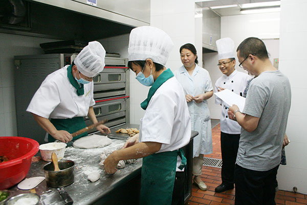 今年進(jìn)入夏季以來,氣溫變化較大,時(shí)有陰雨,給蚊蟲、蒼蠅的滋生帶來了有利條件,同時(shí)給我們后勤食堂的工作人員增加了許多工作,為確保全所職工和病人的用餐衛(wèi)生安全,嚴(yán)把食品衛(wèi)生安全關(guān)。8月19日上午,我所工會(huì)膳食委員會(huì)人員對(duì)食堂進(jìn)行了突擊檢查,從食品采購渠道、盛器是否清潔及食材的分類放置及使用、操作間的清潔衛(wèi)生、冰箱有無過期霉變食品、食品加工人員是否規(guī)范操作、有無“四害”等方面進(jìn)行了全面檢查,特別加強(qiáng)了對(duì)食品新鮮度、剩余飯菜處理的檢查。檢查完畢,膳委會(huì)現(xiàn)場(chǎng)進(jìn)行了反饋:食堂全體員工在今年夏季多變的氣候條件下,能夠嚴(yán)格執(zhí)行餐飲行業(yè)規(guī)范,沒有絲毫懈怠,牢牢抓住了食品從采購到烹調(diào)各個(gè)環(huán)節(jié)管理,特別強(qiáng)調(diào)葷蔬菜新鮮、菜肴燒熟、生熟分開、盛器清潔,量出為入。及時(shí)指出個(gè)別配餐人員未按規(guī)范戴好口罩帽子。通過檢查監(jiān)督,督促食堂不斷改進(jìn)工作,讓職工和病人吃的安全,吃的放心,吃的健康。(文 工會(huì) 仲愛生/圖 工會(huì))