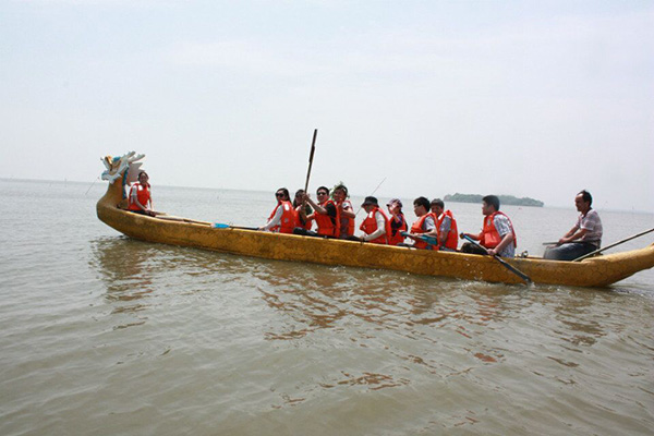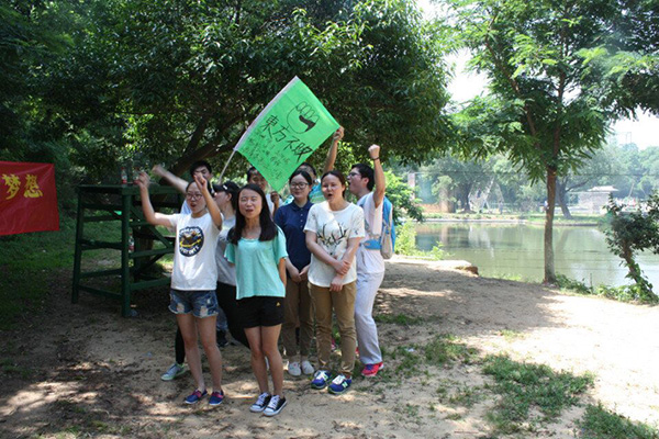 燦爛的晴天,大家的心情也格外的好,經(jīng)過一系列熱身活動后,隊員被隨機分為兩隊,通過集體討論,確定了各自的隊名、隊長、隊花、隊旗、隊歌和口號。在隨后的拓展過程中,各隊隊員也都拿出了十足的勇氣和良好的精神狀態(tài),在歡聲笑語中,通過個人挑戰(zhàn)、通力合作,圓滿完成了空中斷橋、水上鋼絲和龍舟比賽這三個項目。